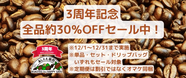 12/22(月)~12/31(水)ご注文分は、年明け1/5(月)以降で順次焙煎・発送をさせて頂きます。